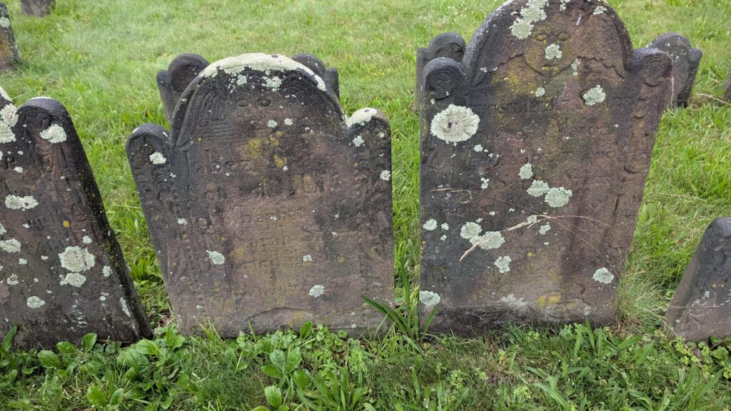 This area of the graveyard had many members of the Ward family, unfortunately it’s a very shady area and they are covered in fungus and moss which makes them hard to read. The 4th from the left in the second row says John Ward, he was Phebe’s son too. It’s likely the others are his family. He was one of the largest landowners in Middletown, known as “landed Ward”. He raised 6 grand children and gave them each a farm when they began their lives. He married Margaret Hubbard. The Hubbard family graves can be found in the same area of Riverside Cemetery.