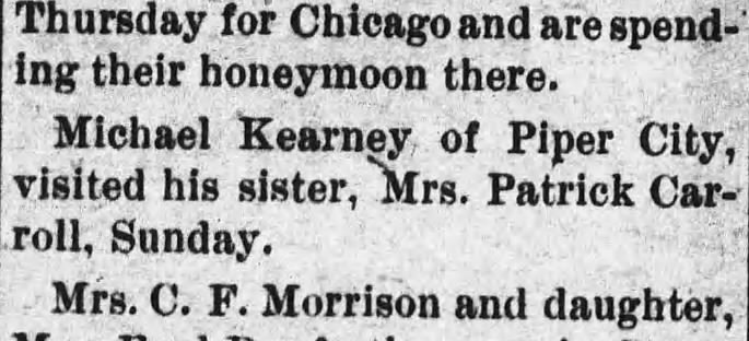 Looking through newspaper articles from Minonk and LaSalle mentioning Mary and Henry Carroll I also found mention of another Kearney, Michael.