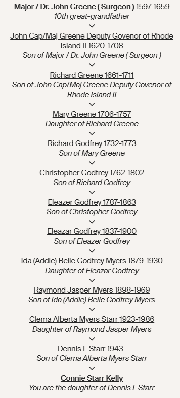 My 9x great grandfather was once the Deputy Governor of Rhode Island colony, his great grandson went on to be the second governor of the state of Rhode Island, serving during the American Revolution, from 4 May 1778 to 3 May 1786.