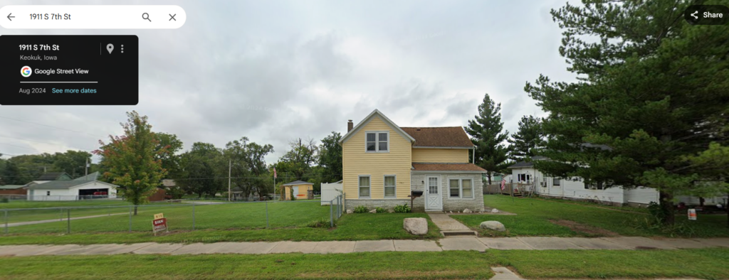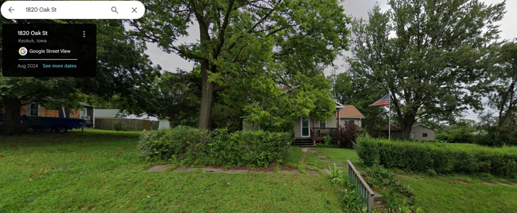 He then revisited Indiana for a year, after which he returned to Keokuk, and with the exception of two or three years’ residence in Clark county, Missouri, here passed the remainder of his life. He voted for Andrew Jackson for President of the United States, but was in politics a Whig and Republican. He was the oldest member of the First Methodist Episcopal church of Keokuk. (My Note: This church became a notorious house of prostitution in the 1920s before being torn down in 1958). He is buried in Prouty Mound cemetery.