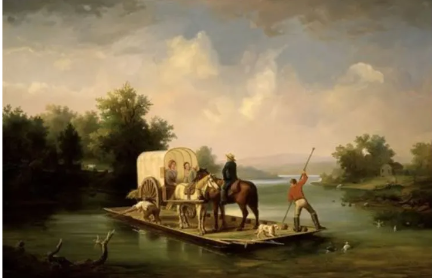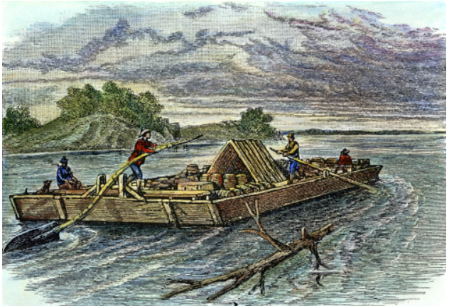 On account of his wife’s ill health, John Harmon built a flatboat, and took his family for a trip down the Mississippi river. She failed to improve, however, and died six miles below Alton, Illinois, in the American bottoms.